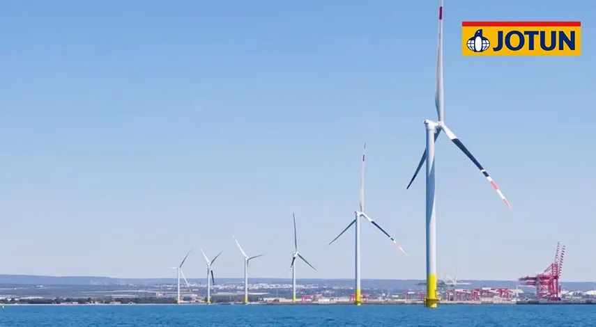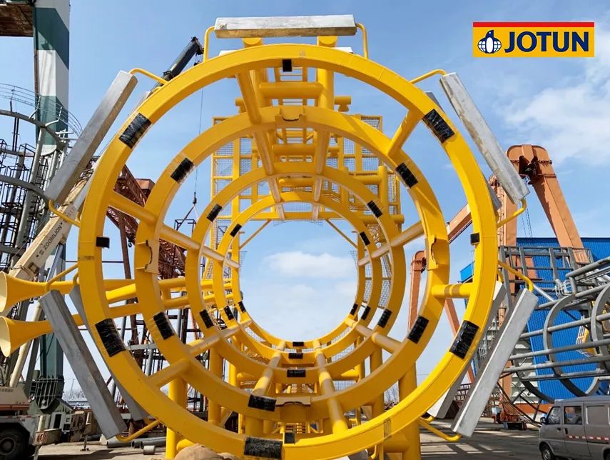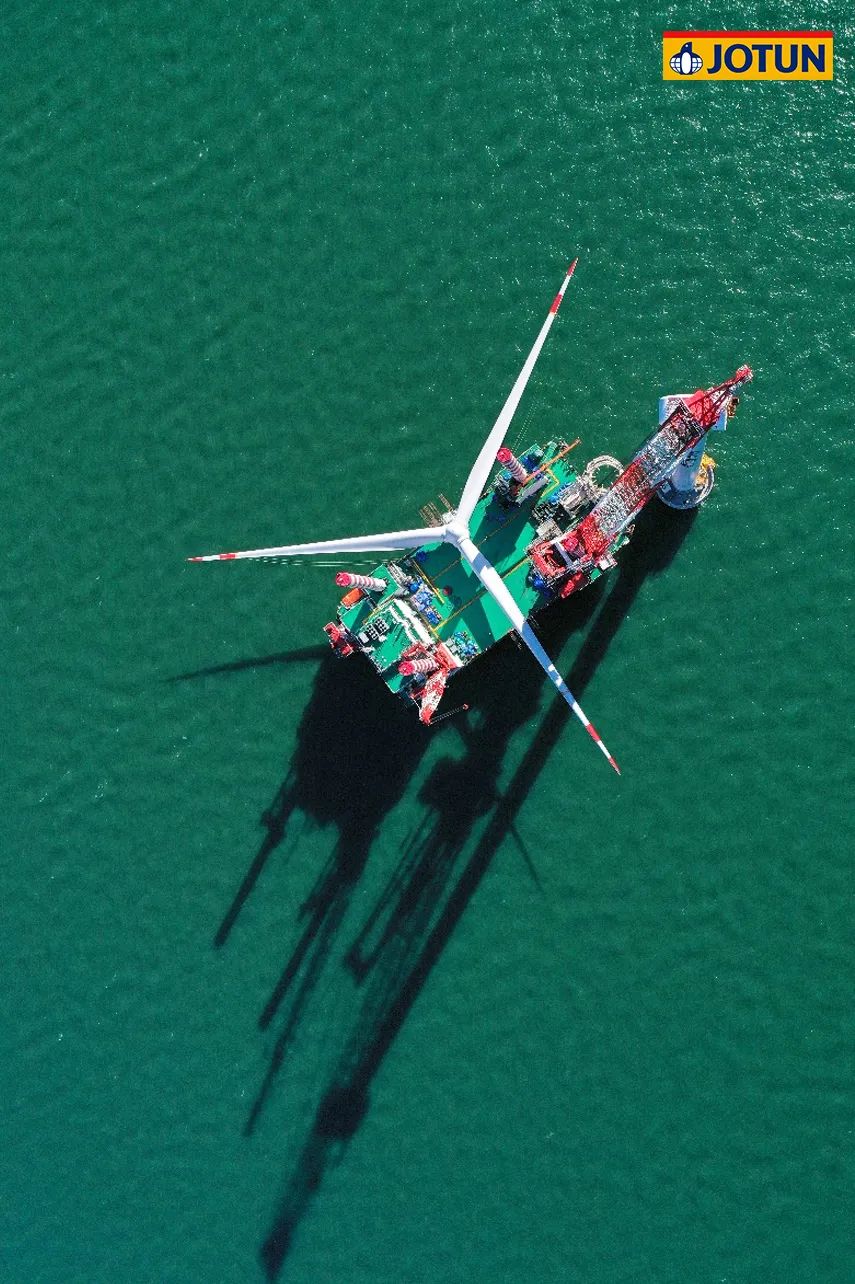 項目總投資102.86億元,規劃容量500兆瓦,水深范圍41-46米,離岸距離55公里。67臺海上風(fēng)機矗立在水深40多米的海里,風(fēng)機基礎結構采用導管架形式,佐敦為整個(gè)項目的導管架涂裝提供了超過(guò)700,000升防腐涂料。