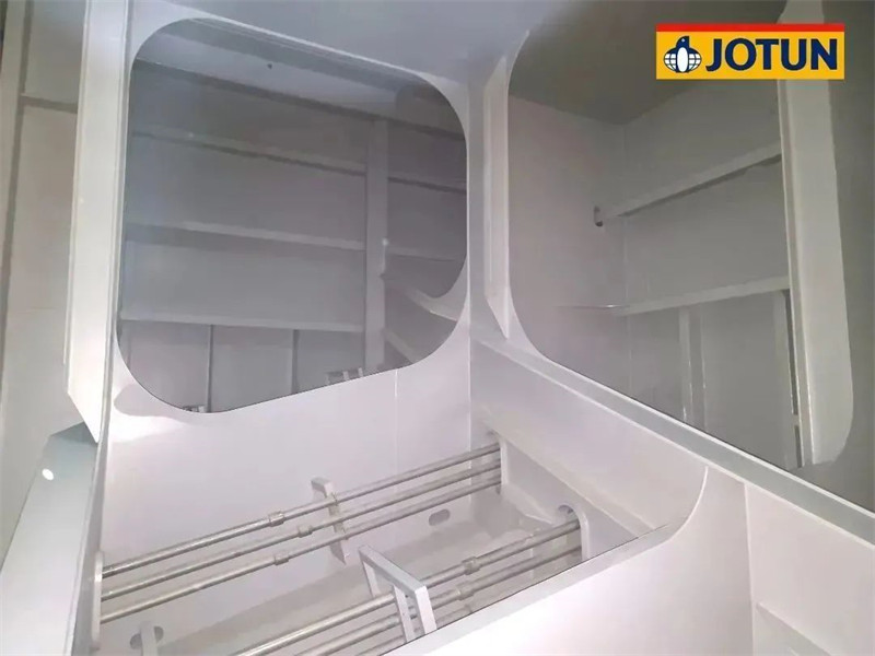該船巨大的脫硫儲存艙使用Tankguard Special Ultra酚醛環(huán)氧底漆,可完全抵御脫硫儲存艙室內激進(jìn)的酸堿環(huán)境。該產(chǎn)品已經(jīng)在眾多化學(xué)品、成品油艙中得到性能檢驗。