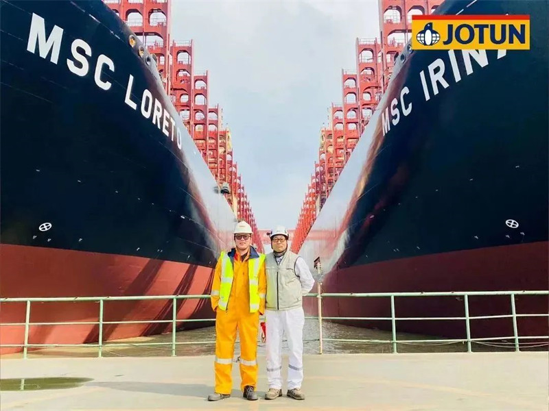 因船型巨大,佐敦為該系列船型派駐了多支由高級技術(shù)服務(wù)領(lǐng)頭的檢驗小組,HPS防污漆統噴時(shí),有多達6名佐敦涂裝顧問(wèn)在現場(chǎng)提供技術(shù)服務(wù)。
